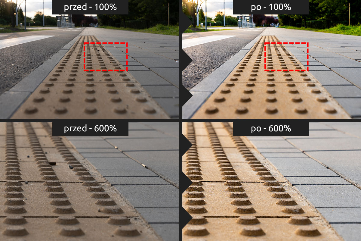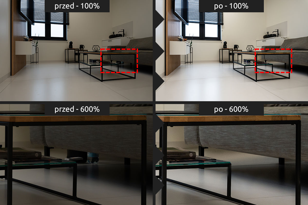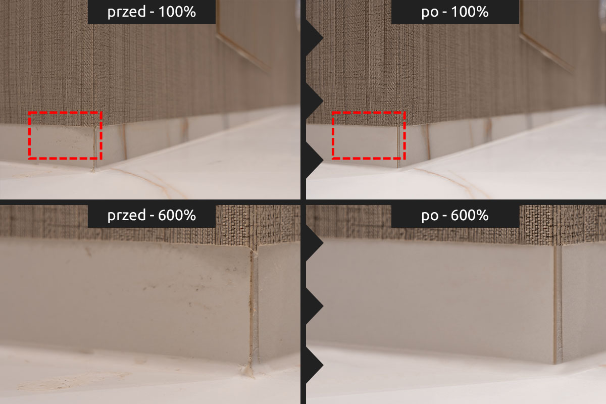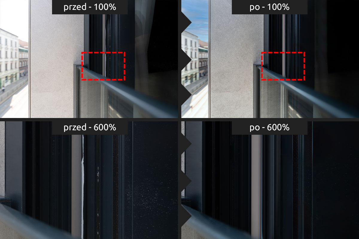 Usuwanie niechcianych elementów Gdy na zdjęciach Twojej firmy, jej produktów lub realizacji pojawiły się przypadkowe osoby, logotypy czy elementy zakazane do publikacji – czyścimy kadr pod kątem prawnym i estetycznym.